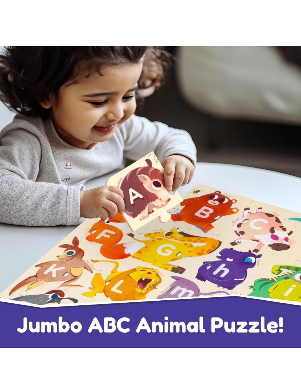 What's in the Box: Features 26 letter tokens, 25 jigsaw pieces, and 4 Bingo cards for educational fun.