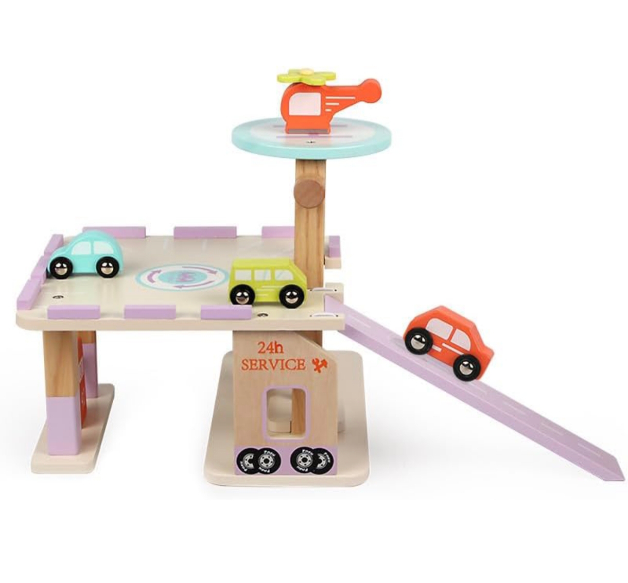 Multi-Level Parking Adventure: Explore a spacious 1 level garage complete with ramp and a hand-operated elevator for dynamic play.